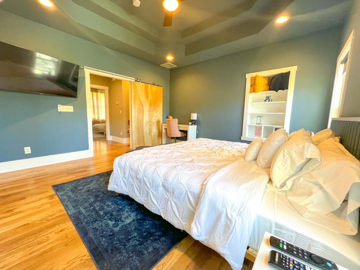 The living room has a 65 Samsung smart tv. The 2 guest bedrooms have 40" televisions & the master bedroom has a 55" smart tv (all tvs equipped with Amazon fire sticks). This is a home away from home that you'll appreciate once you step foot inside.