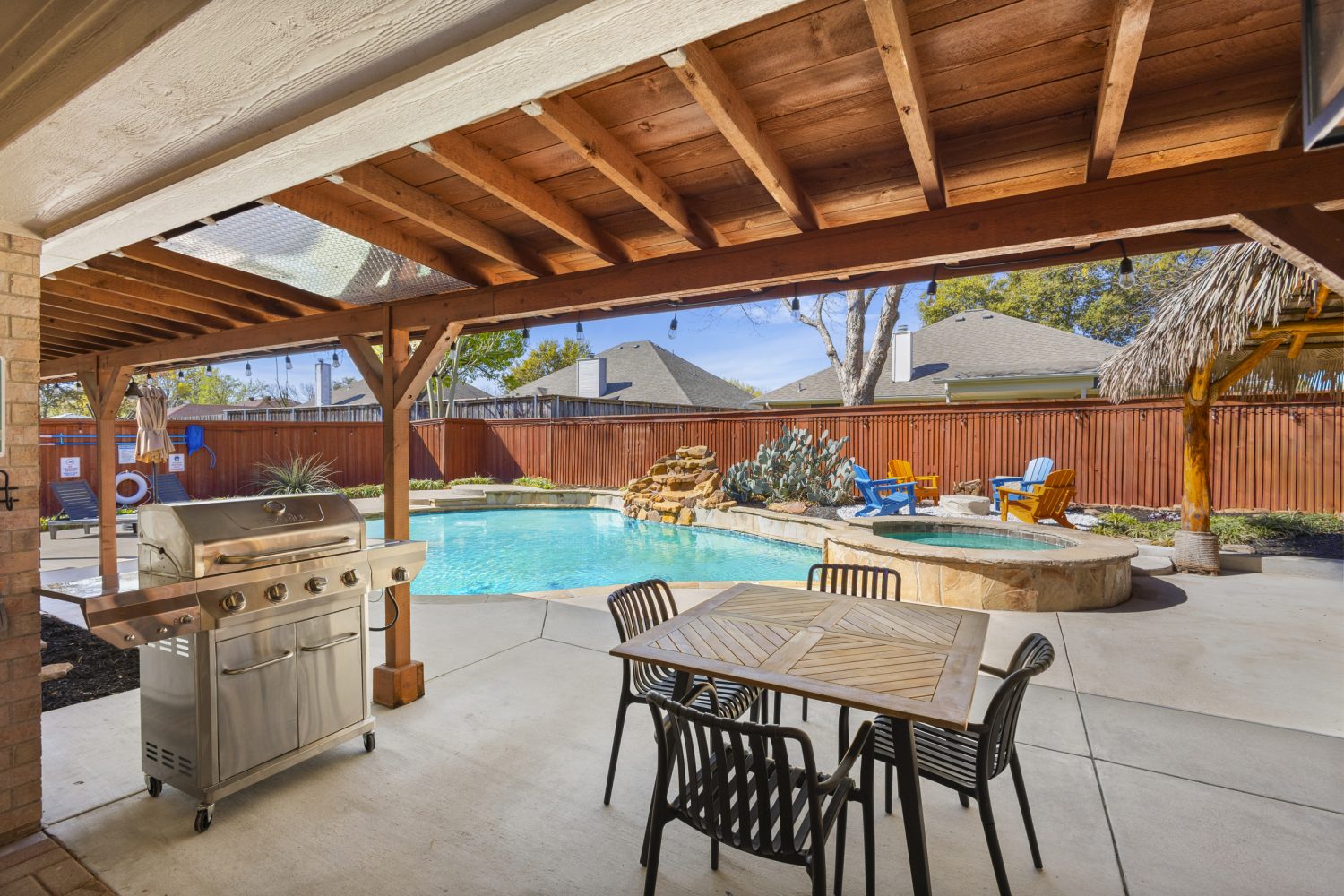 Nothing beats the Texas heat like a cool, refreshing dip in the pool! You’ll want to be sure to pack your swimsuits! Whether you prefer to do some laps around the pool, relax on the poolside lounges, or sip your happy hour drinks, this backyard was designed for creating lasting memories with family and friends! There’s also an outdoor BBQ grill for easy meals!