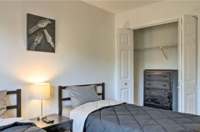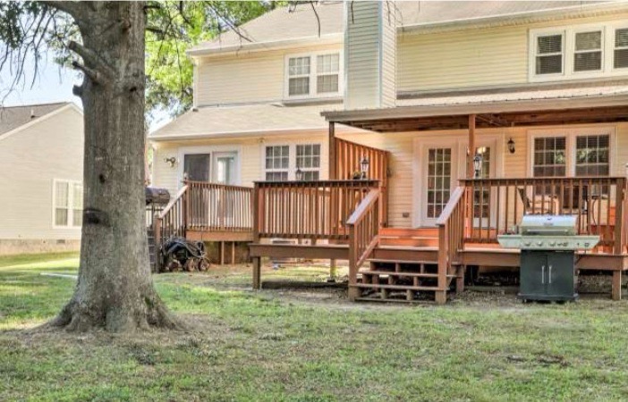 The outdoor space includes a spacious deck with furniture, perfect for enjoying a morning cup of coffee or an evening cocktail. The backyard also features a gas grill (tenant must purchase propane) for those who love to cook outdoors. The property also includes a work area for those who need to catch up on work during their stay. This property is conveniently located just a short drive from restaurants, supermarkets, coffee shops, groceries, and pharmacies.